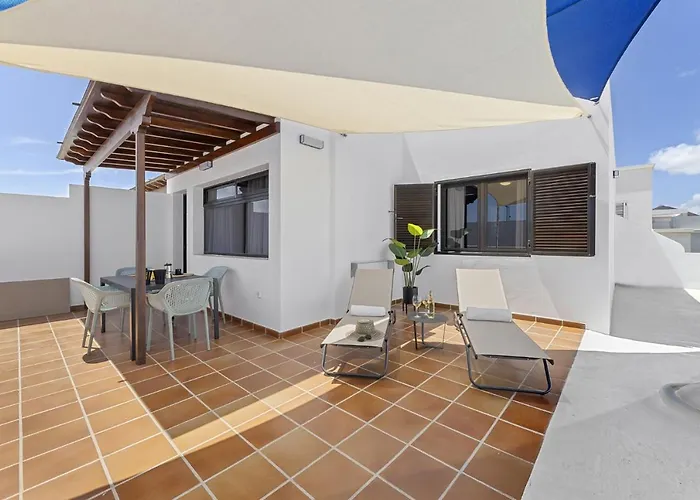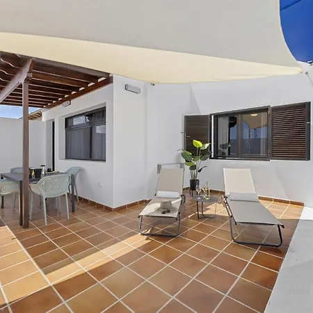 Apartmán je 5 minut jízdy od letiště Lanzarote. Hosté si mohou odpočinout na terase.